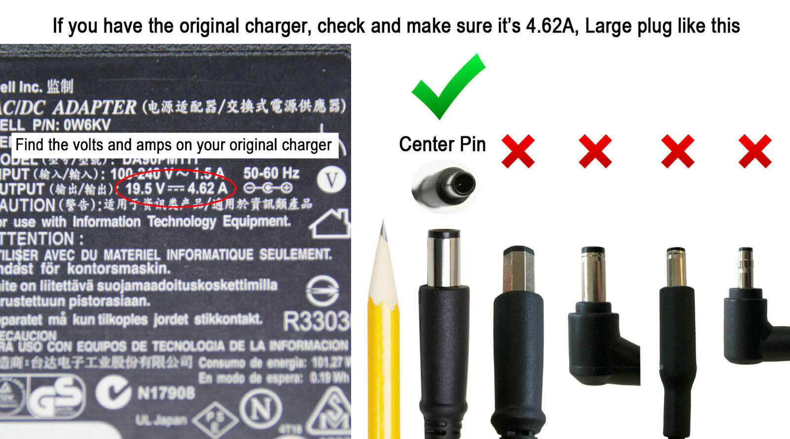 Dell 90W AC Adapter for Inspiron Latitude Vostro Large tip 7.4mm X 5.0 mm
