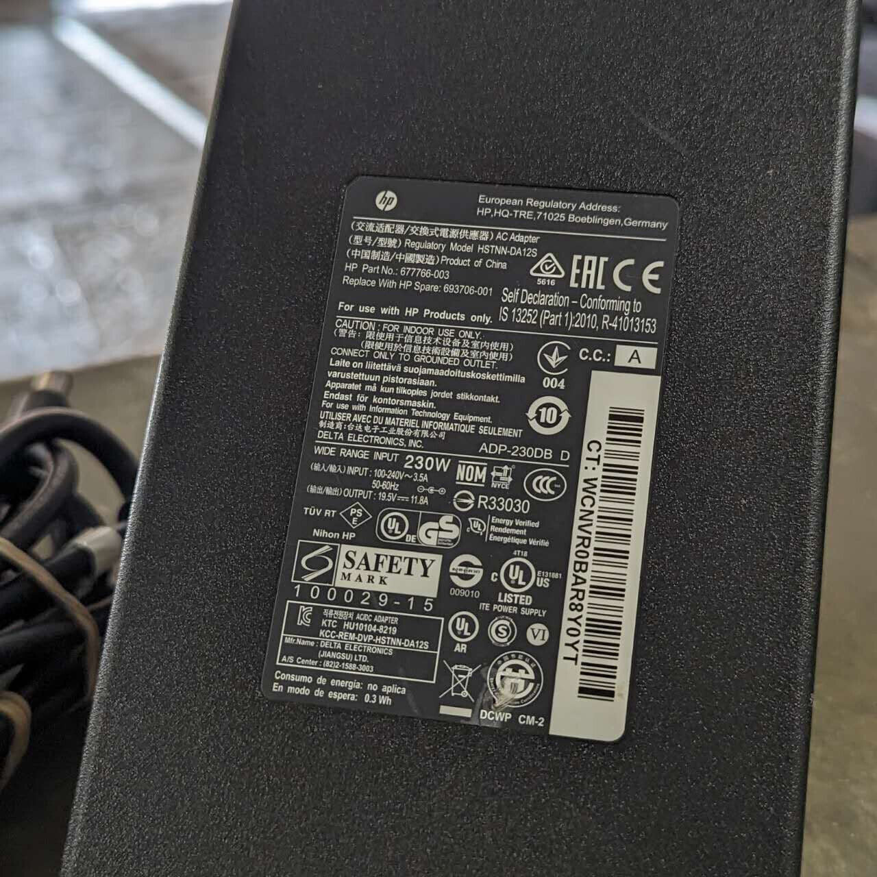 Genuine HP 230W AC Adapter With Power Cord